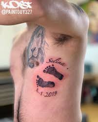 In cases like this you can still have the baby foot-printed and use the prints to create a very personal tattoo. Baby footprint tattoos are made with the footprint size taken at the time of the birth of the child. It always reminds you of having created a biological replica of yourself who is growing each and every day.